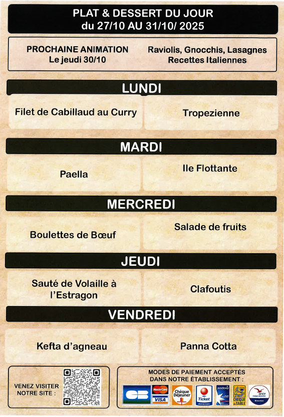Plat du Jour du 27 au 31 octobre 2025
